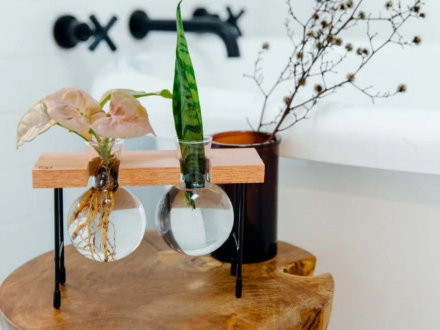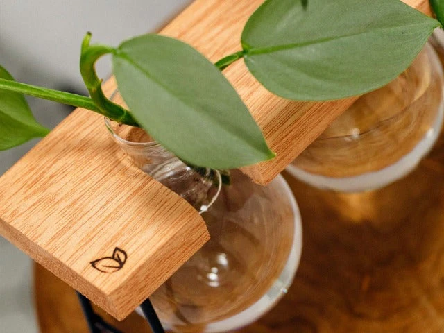 The Fleur propagation station is a bubbly and a welcomed addition to any space in need of a little greenery! She pairs perfectly with cuttings like the Fiddle Leaf Fig or Heartleaf Philodendron.