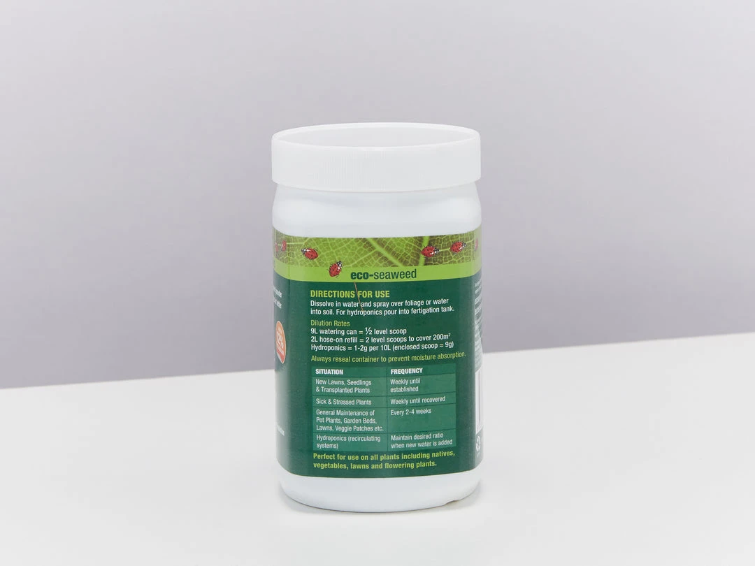 Eco-seaweed is a registered organic, preservative-free seaweed power. It has a wide range of benefits when applied to plants. It is perfect for stimulating growth, encourages better flowering, fruiting and root development and reduces transplant shock.Â
