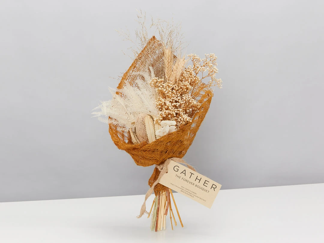 Banksias, Wheat and Gypsophila are just a few of the sandy hued flowers you might find featured in this bunch lovingly wrapped and sent to you. The perfect delivered gift to your bestie, (or desktop companion for you – treat yourself!).Â