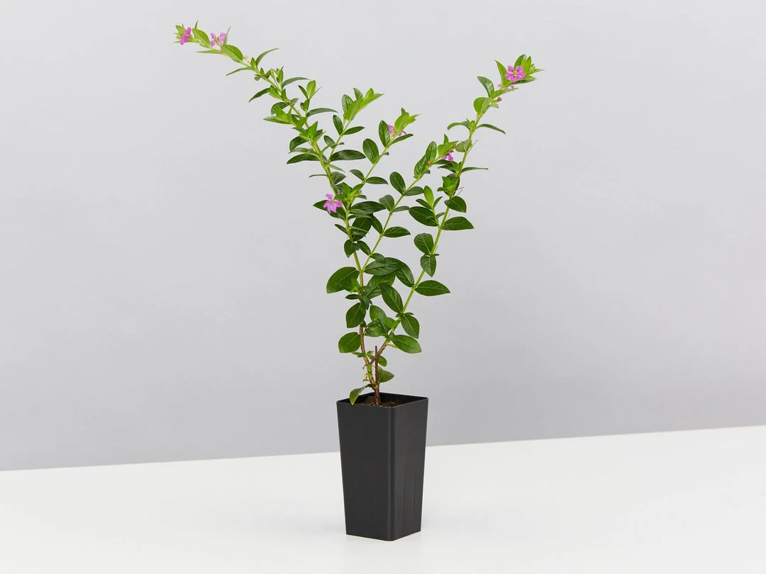 Cuphea hyssopifolia – Mauve, also known as “False Heather” is a small, evergreen, fast growing shrub with bright green glossy leaves and produces dainty mauve flowers year-round. Tolerating full sun to semi-shade, it is a very hardy plant, ideal as a low hedge, for garden borders, in rockeries or in pots. They respond well to light trimming.