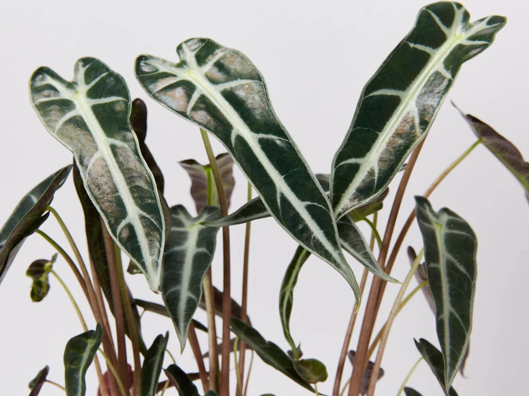 Alocasia lowii ‘Bebe’/’Bambino’ is all cutesy like a smaller, more compact version of Alocasia lowii ‘Polly amazonica’. The extremely glossy, dark green leaves are spear-shaped with broad, bold and white veins. It is a stunning feature plant that you can’t keep your eyes off.