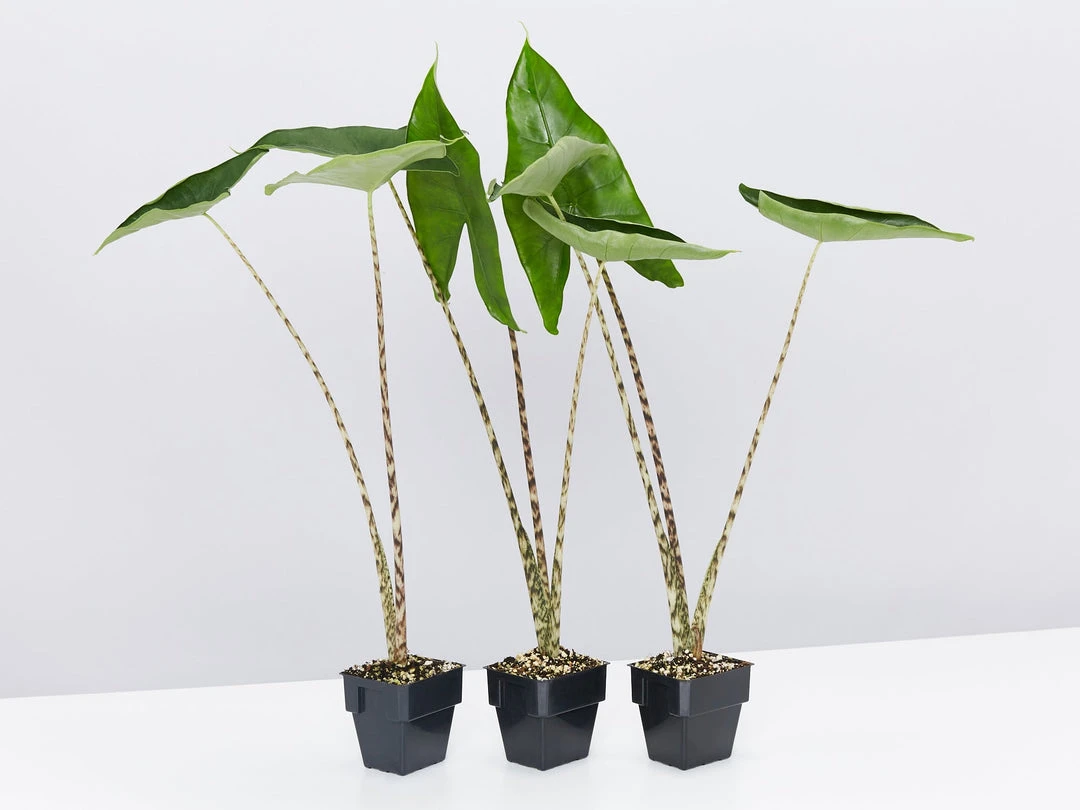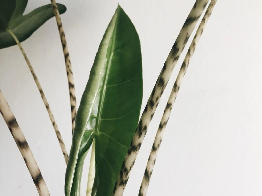Alocasia zebrina is a rare houseplant with large green arrow-shaped leaves and striped stems (hence the name). It is not the easiest houseplant to take care of but it looks so unique it might be worth adding to your collection. It hails from the tropics so likes a humid environment. You can keep this plant on the dry side but when it starts to wilt give it a good soak.