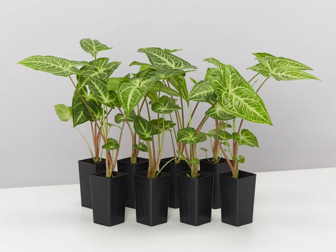 Syngonium Noak is a great trailing houseplant perfect for hanging baskets. Noak has deep green arrow-shaped leaves with patterns of light green and white. The Syngonium is so underrated as a houseplant – super easy to care for and have the most amazing foliage patterns and colours. You couldn’t ask for another.