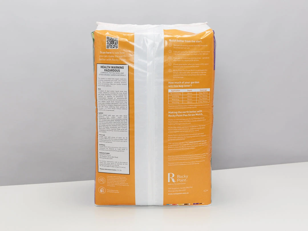 Rocky Point’s Pea Straw Mulch is a nourishing mulch that stimulates growth for a blooming garden. Great for edible gardens the Pea Straw Mulch helps retain moisture, suppress weeds and protect against soil erosion.