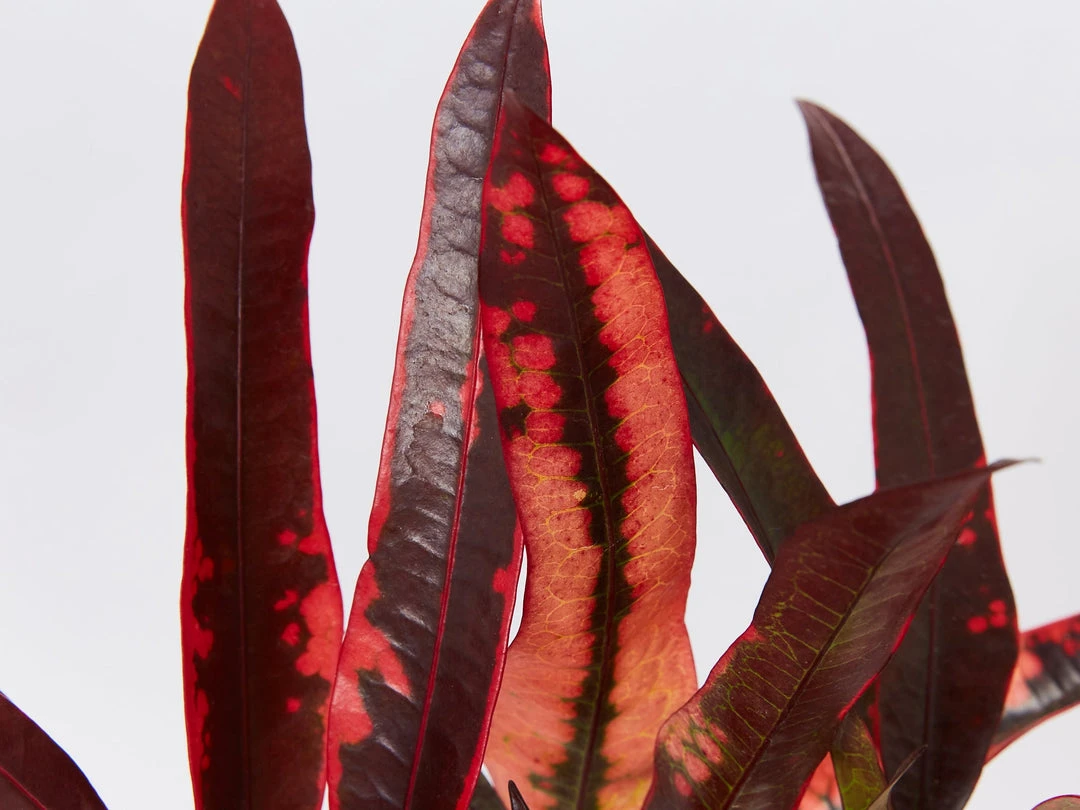 Codiaeum variegatum is almost a necessary plant in any tropical garden. An explosion of colour their bright leaves are big and come with splashes of reds, yellows, purples and greens. Add colour in a sunny spot in a tropical garden or a brightly lit spot inside your home.