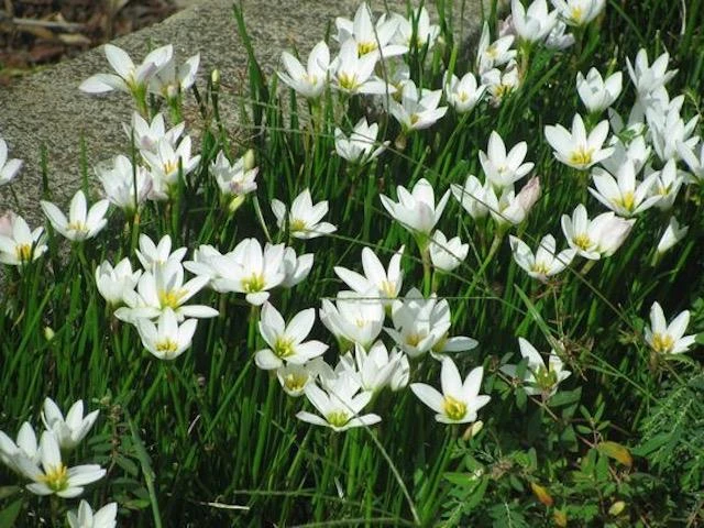 Zephyranthes Candida is the posh name for our gorgeous little Rain Lily. This lovely low ground cover looks like long glossy grass until it rains, and then white cup-shaped flowers pop out to enjoy the moisture. Beautiful white flowers will appear nearly all year round.