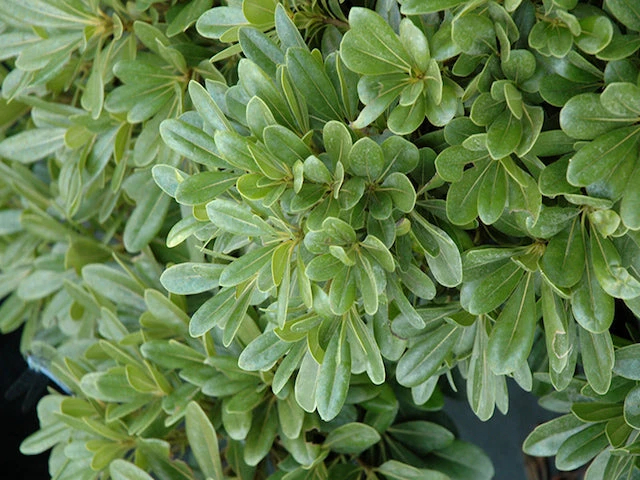 Pittosporum tobira Dwarf is a small, dense, evergreen shrub with glossy, dark green foliage. This little guy is no fuss, fast growing, low maintenance and bears small fragrant flowers in late Spring and is perfect as a border, low hedge or in a pot.Â