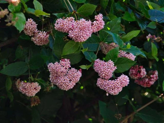 Rondeletia amoena is a tall, dense and hardy evergreen shrub just perfect for a hedge or screen. Large, broad leaves that are glossy, heavily veined and coloured mid-green fill your garden all year round, and then in springtime, the magic happens.Â