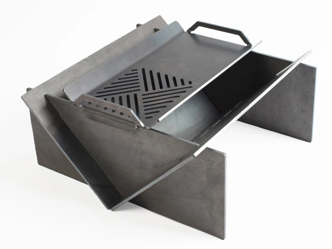 Why should having a smaller fire pit limit your ability to cook over an open fire? With the Stahl® Small Grill Plate, you can barbecue on an open flame or sauté on the hot plate, then take the Grill off for an evening around the fire.