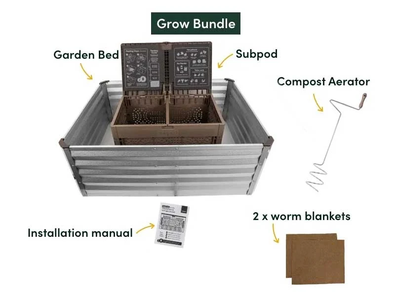 Composting food waste & growing fresh produce has never been so simple. Subpod your food scraps and create fancy rich soil right inside your Grow Bed. let the wiggly worms and microbes do the heavy lifting while you take a seat in the sunshine. The Subpod Grow bundle is a garden bed, compost system and seating area all rolled into one!