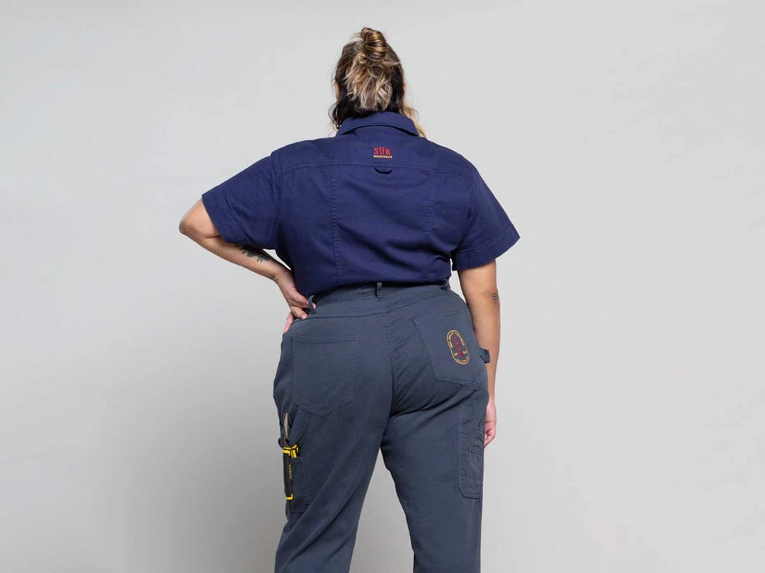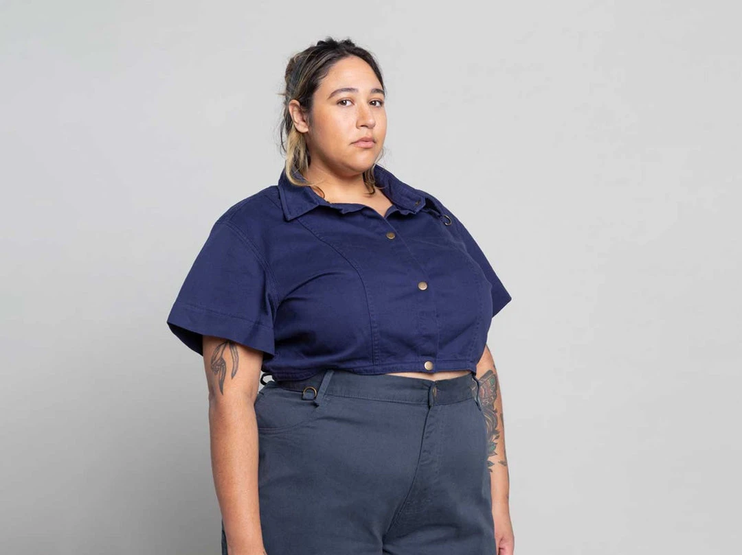 A unique utility shirt with wide sleeves, spacious bust and streamlined to the waist. Perfect for the job site or your street style, this shirt is flattering and functional. Choose your favourite colour way and get back to it!