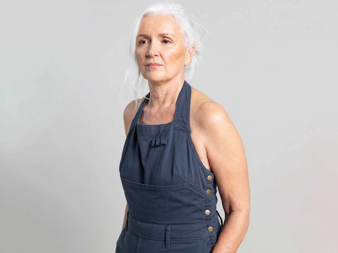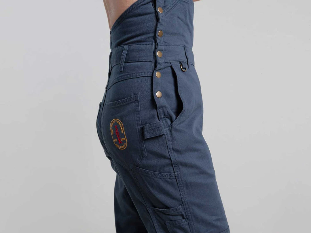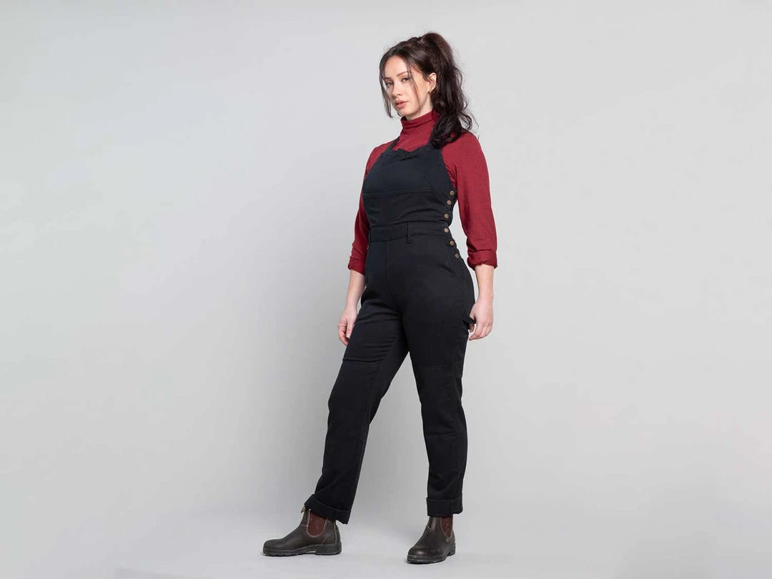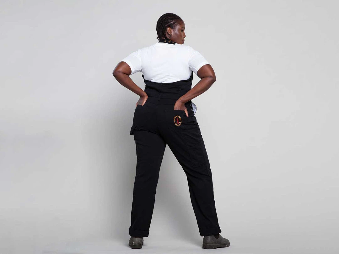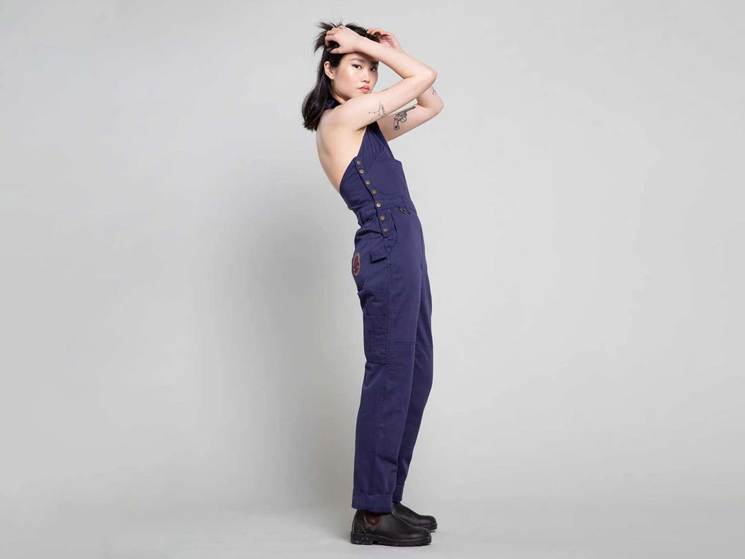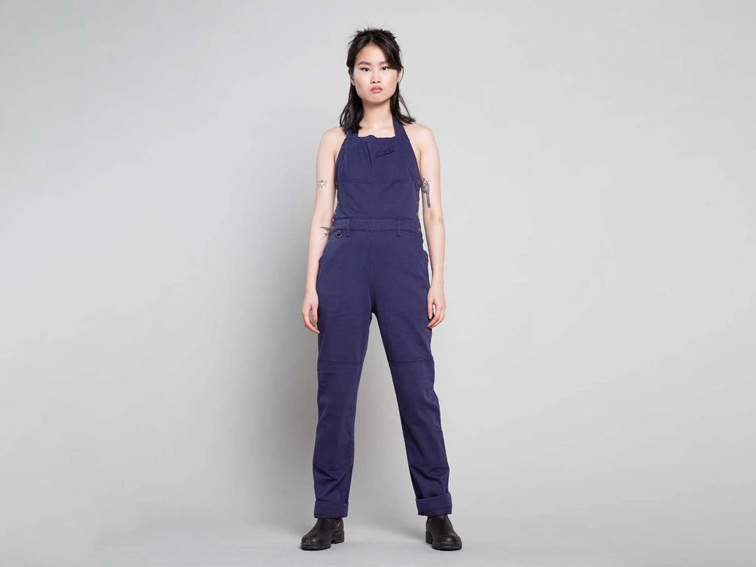 A unique, ultra-feminine & extra functional work suit with all the bells and whistles: double knee protection, 6 pockets and 2 hammer holsters. This suit is fitted and flush, with an adjustable halter neck closure, giving your arms complete freedom and full rotation for overhead work or late-night dancing.Â