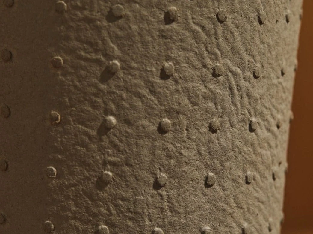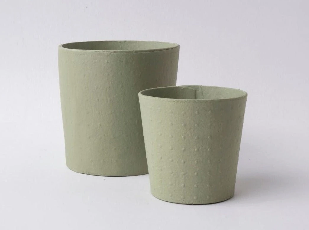 The Dotty conical pots are embossed with delicate patterns of dots in soft tones of pale blush, antique white and sage green. These pots are meticulously handcrafted by master artisans in Sri Lanka, each vessel takes two weeks to complete.