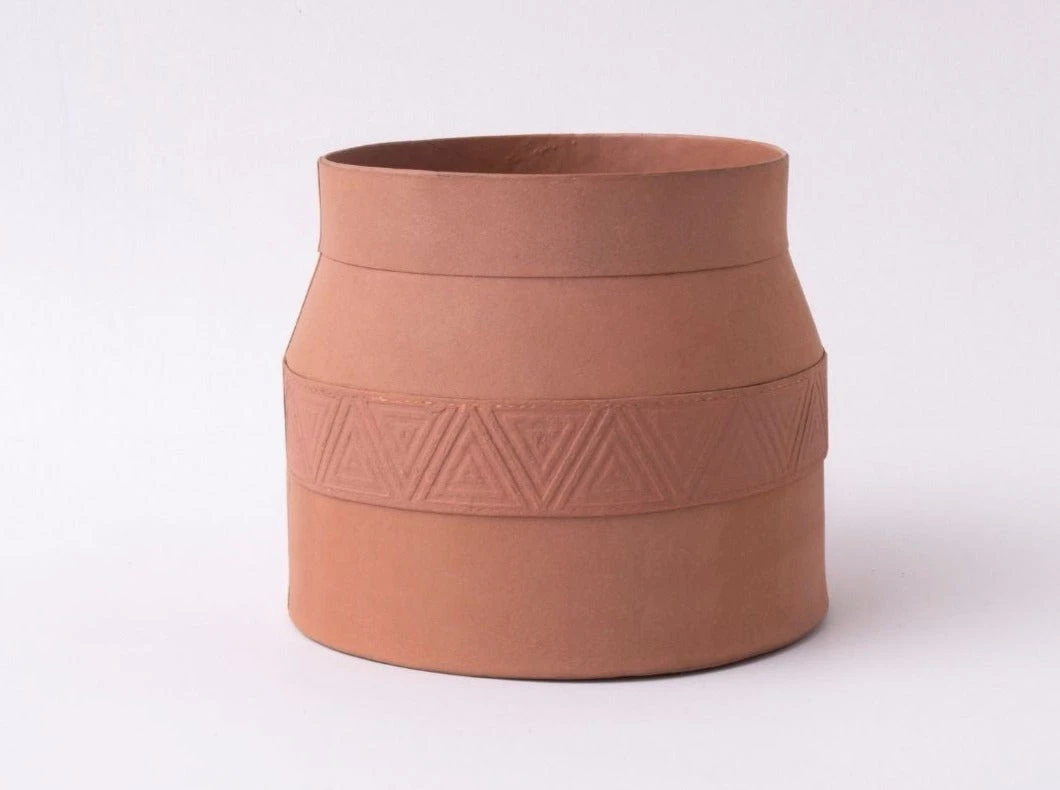 The Matki Pot with Kilima design in Rustic Brown colour is a lightweight yet rigid pot holder. You can place a nursery pot directly inside if you use it to house your plants. Each jar is handcrafted in a fair trade working environment by women artisans in Sri Lanka. In addition to looking great, these pots are sustainably made from recyclable materials with zero-waste production.